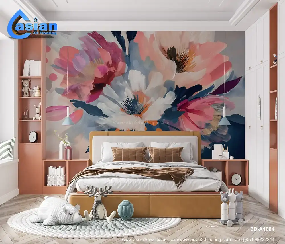 Bold Abstract Floral Artwork with Vibrant Hues and Contrasting Colors||3D-A1884