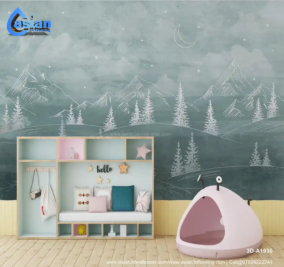 This tranquil wallpaper features a soft green landscape with mountains, pine trees, and a crescent moon, creating a serene atmosphere under a starry sky. Ideal for bedrooms, living rooms, or any space that requires a calm, nature-inspired touch. Benefits:- Ideal for creating a calming, nature-inspired atmosphere in any room, especially bedrooms or living spaces seeking a peaceful design.