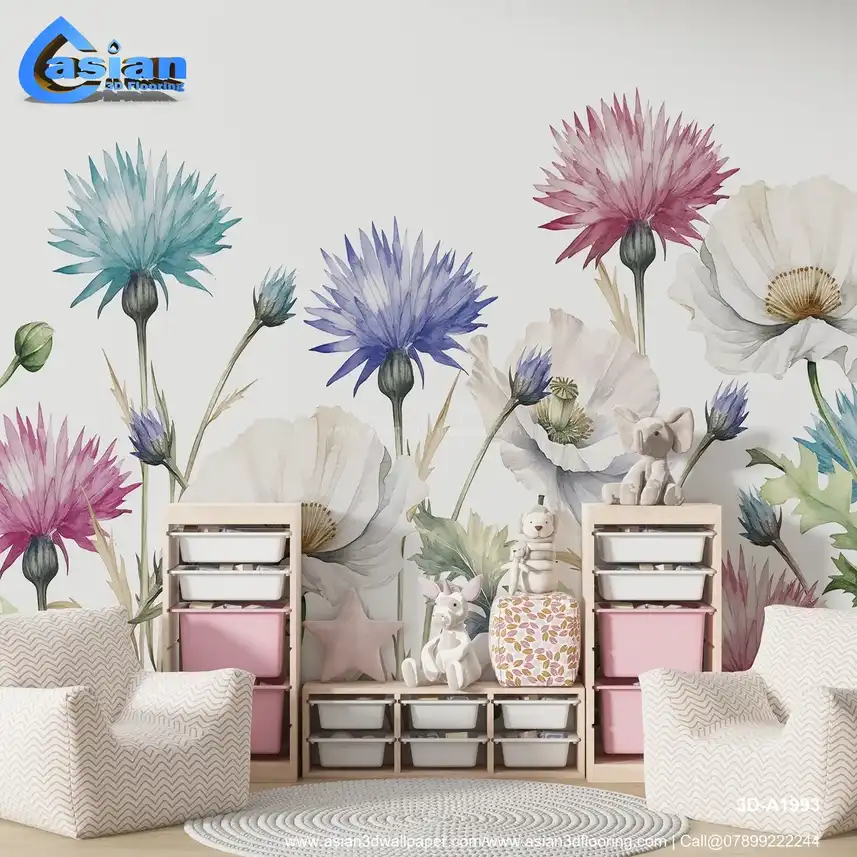 Colorful Watercolor Flower Wallpaper||3D-A1993