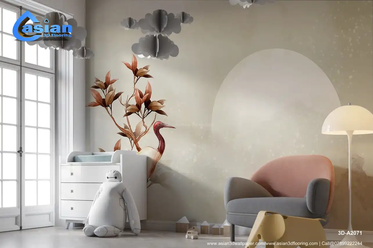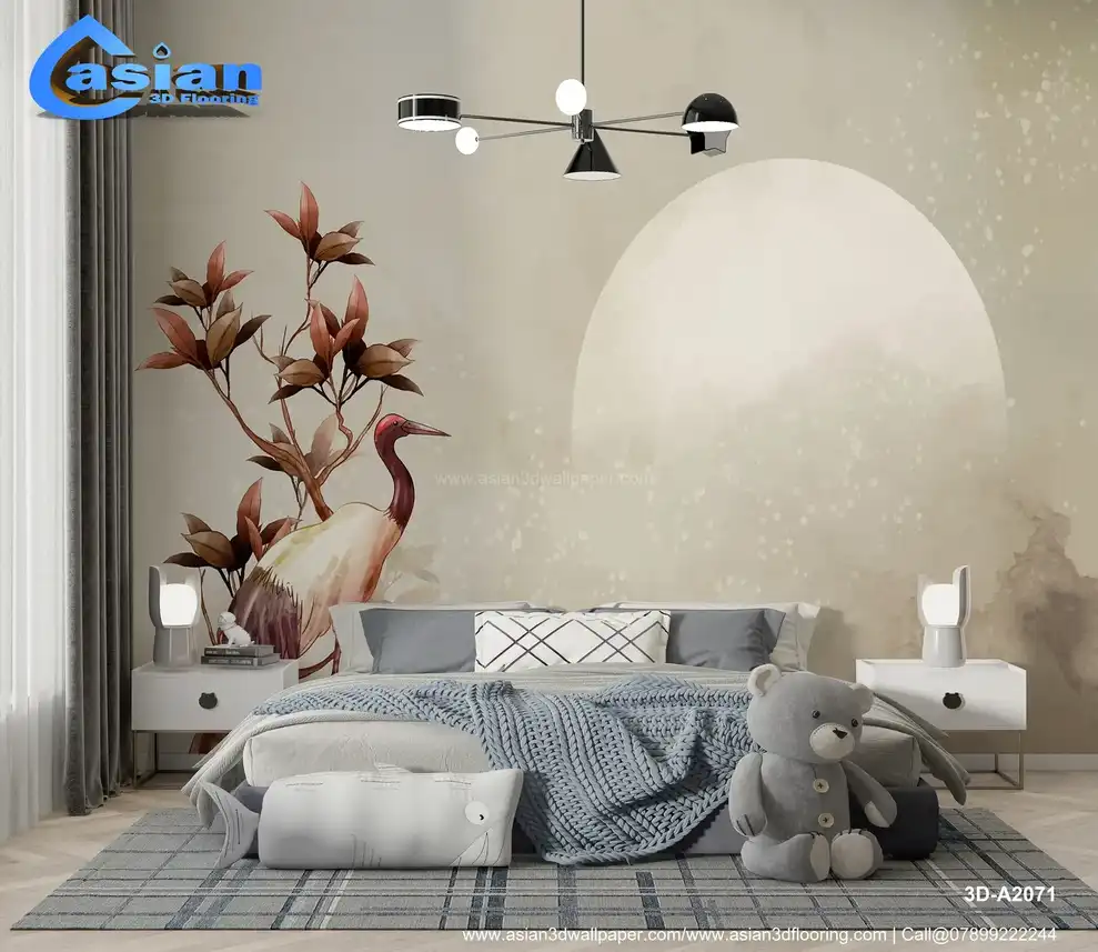 Crane and Moon Art Print - Elegant Asian Inspired Design||3D-A2071