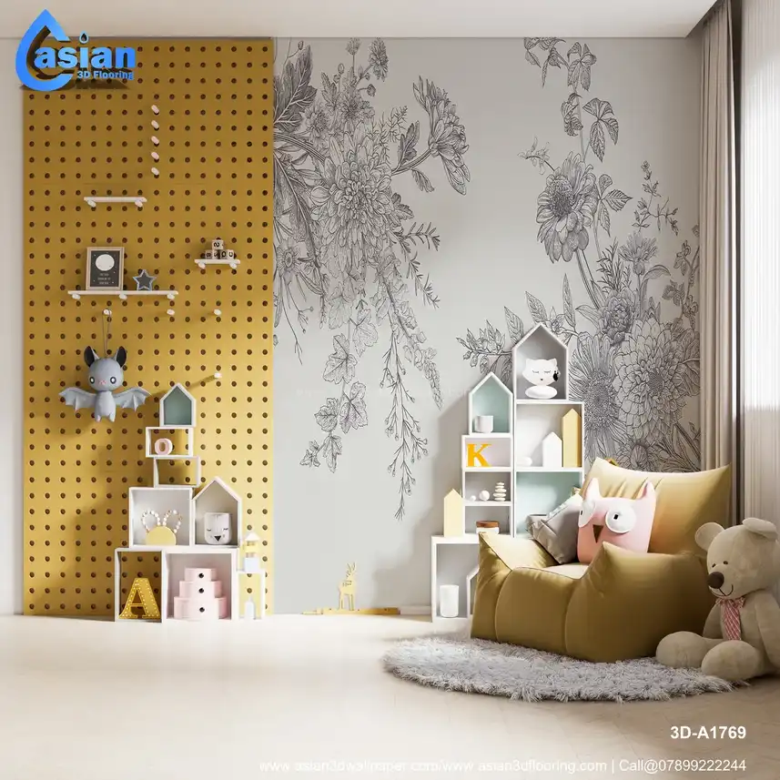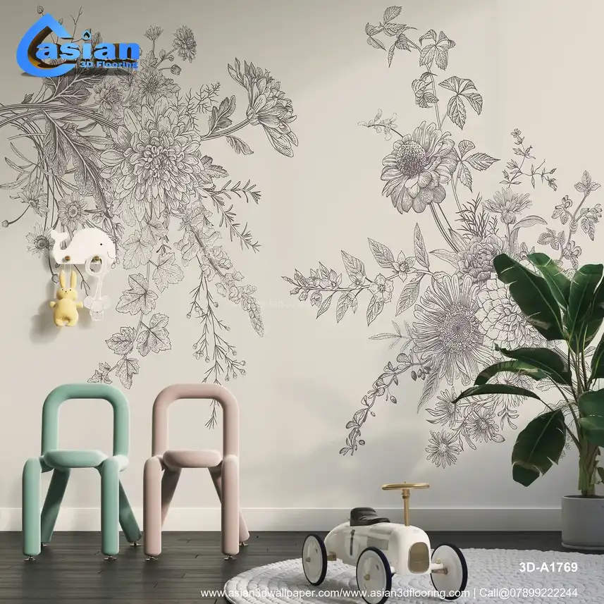 This elegant floral line art wallpaper showcases intricate botanical designs on a soft white background, adding a touch of sophistication to any space. Ideal for enhancing a modern or vintage-inspired decor. Benefits:- Adds sophistication and natural beauty; perfect for versatile decor styles
