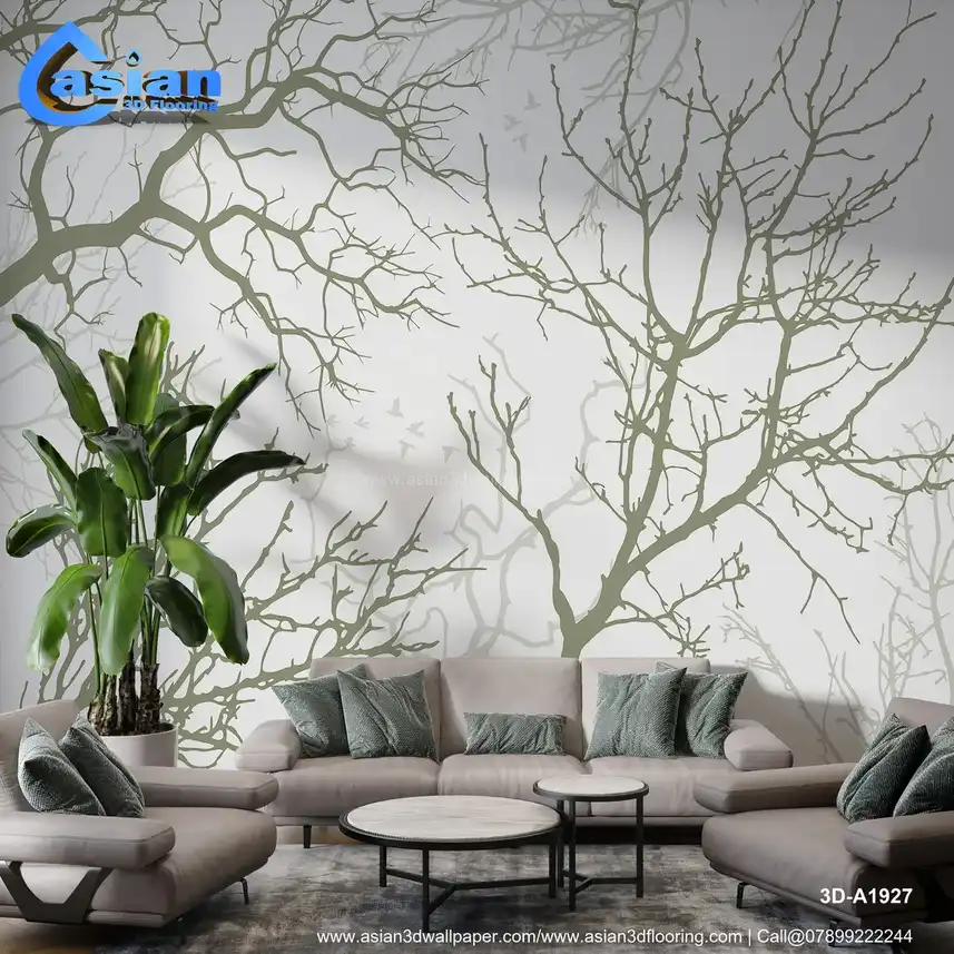 Elegant Green Tree Branches Wallpaper for Nature-Inspired Spaces||3D-A1927
