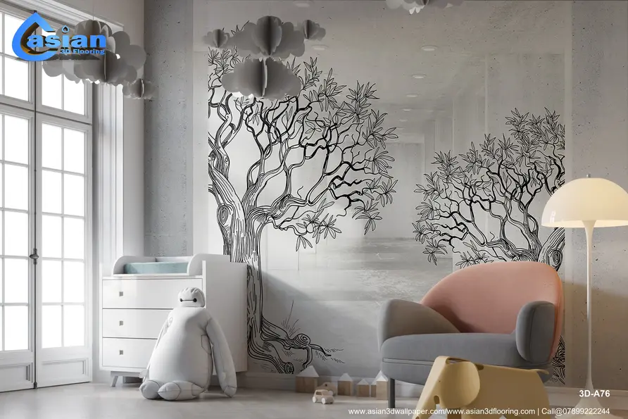 Enhance your interiors with this modern minimalist wallpaper featuring artistic black tree sketches against a textured concrete background. Ideal for offices, living spaces, or galleries, this design combines industrial aesthetics with artistic sophistication. Product Benefits :- Combines artistic elegance with modern industrial vibes; perfect for professional and living spaces; durable and easy-to-maintain material; adds depth and a unique statement to interiors.