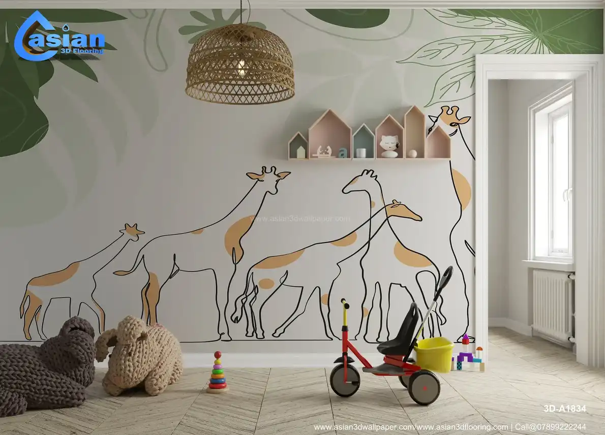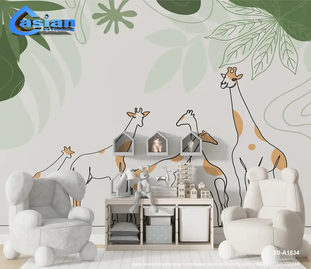 Add a touch of whimsy and nature to any room with this charming giraffe family wallpaper. Featuring simple line art of giraffes set against a lush jungle background, this wallpaper creates a playful, kid-friendly environment. Ideal for nurseries, playrooms, or any space needing a fun, natural vibe. Benefits:- Brings a playful, adventurous vibe to kids' rooms