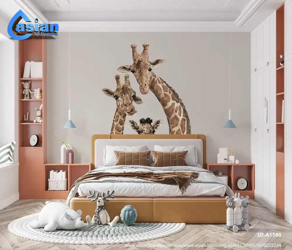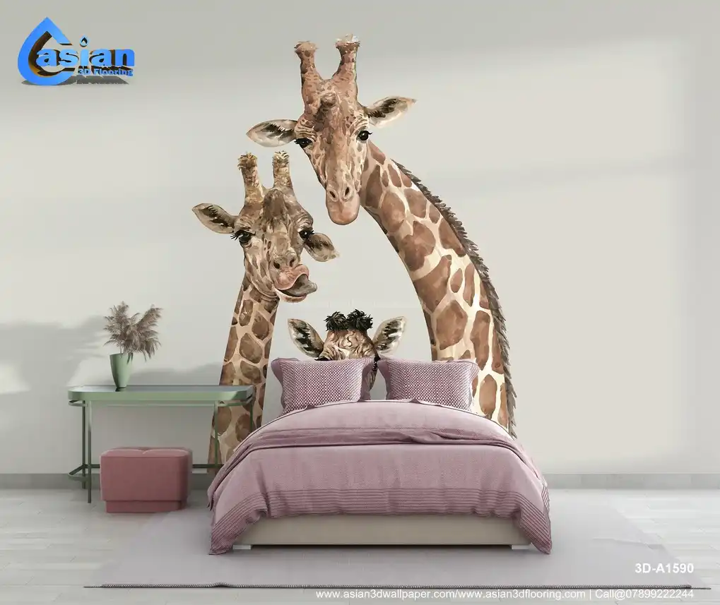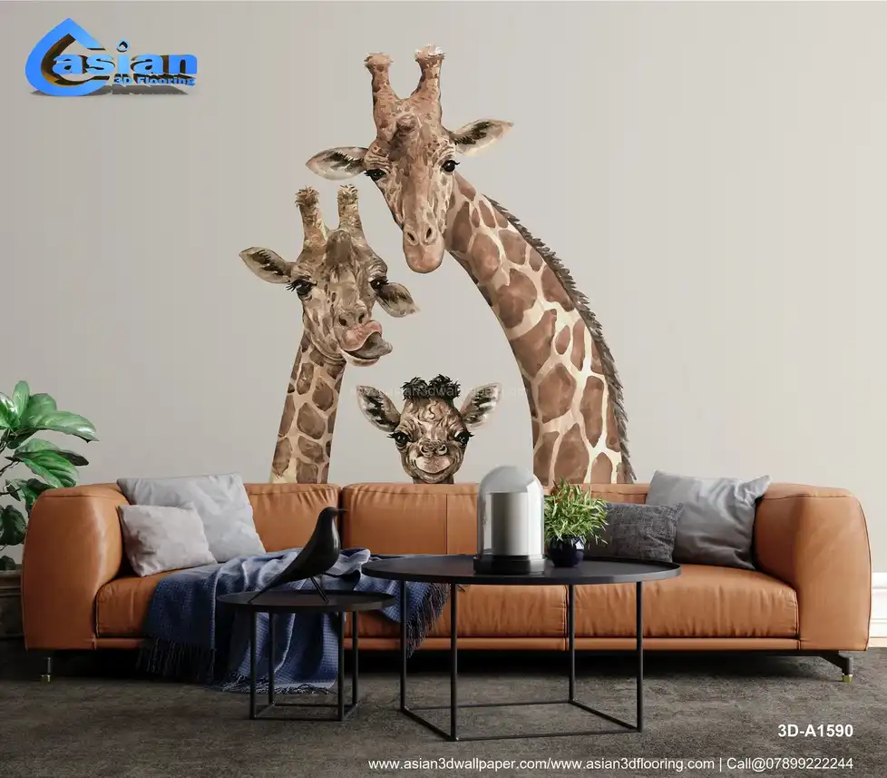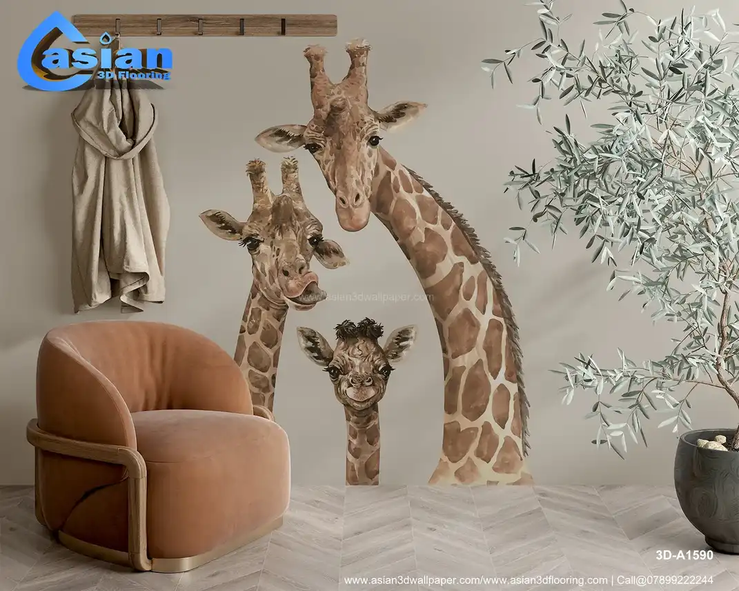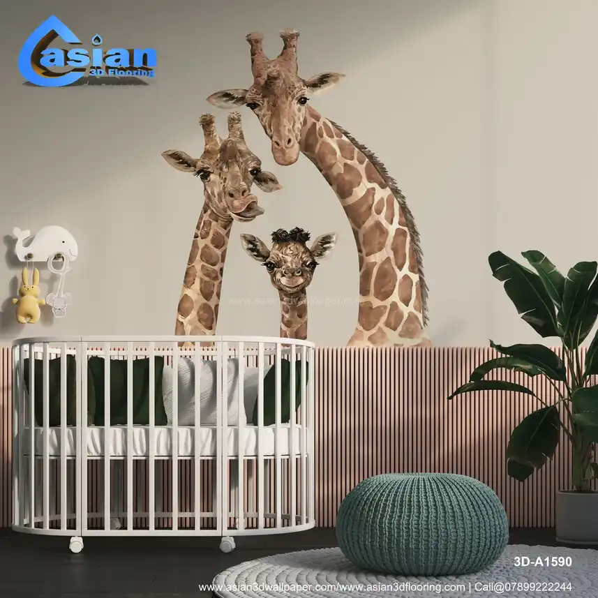 Add charm to your space with this playful giraffe family wallpaper. Featuring three adorable giraffes with distinct personalities, it?s perfect for a nursery or kids? room. Benefits:- This cute giraffe family wallpaper is ideal for creating a fun and whimsical atmosphere in kids? rooms, nurseries, or safari-themed spaces.