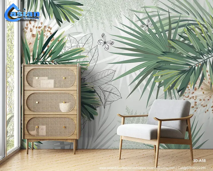 Transform your living spaces into a serene tropical retreat with this stunning wallpaper. Featuring lush green palm leaves, delicate butterflies, and intricate botanical details, this design adds a fresh and vibrant look to your interiors. Ideal for nature lovers and modern decor enthusiasts. Product Benefits :- Brings a calming and refreshing ambiance to any space. Perfect for modern and tropical-themed interiors.