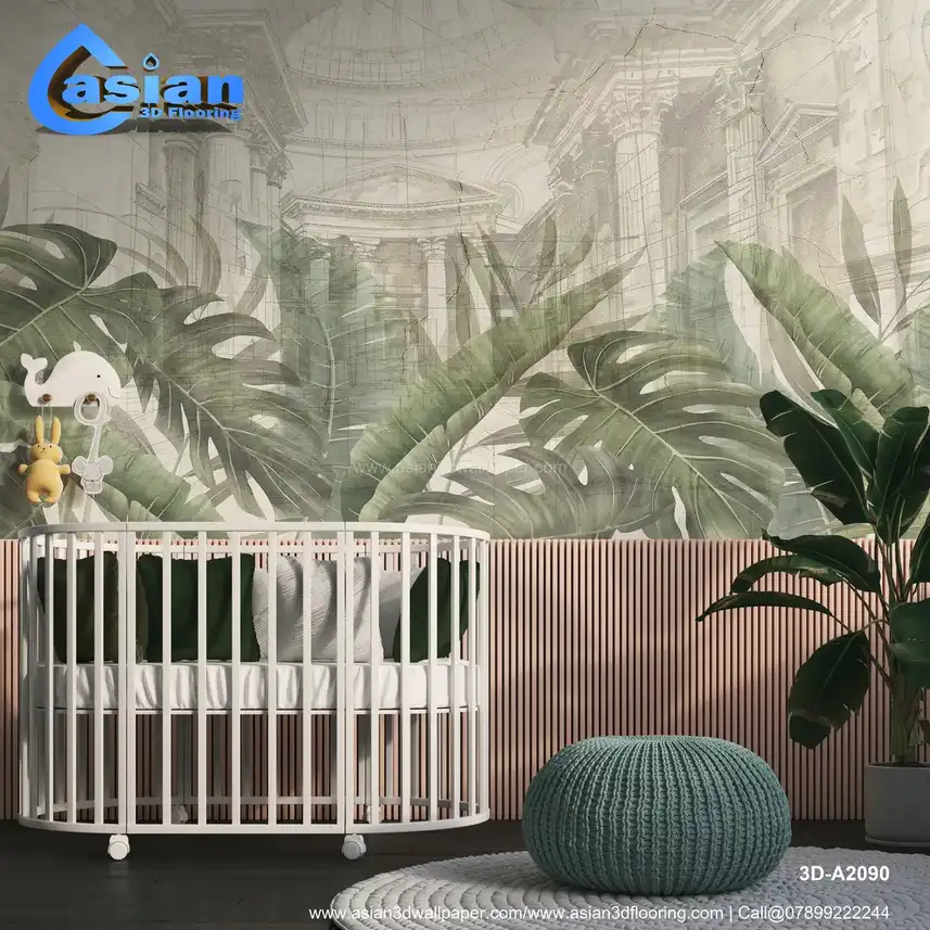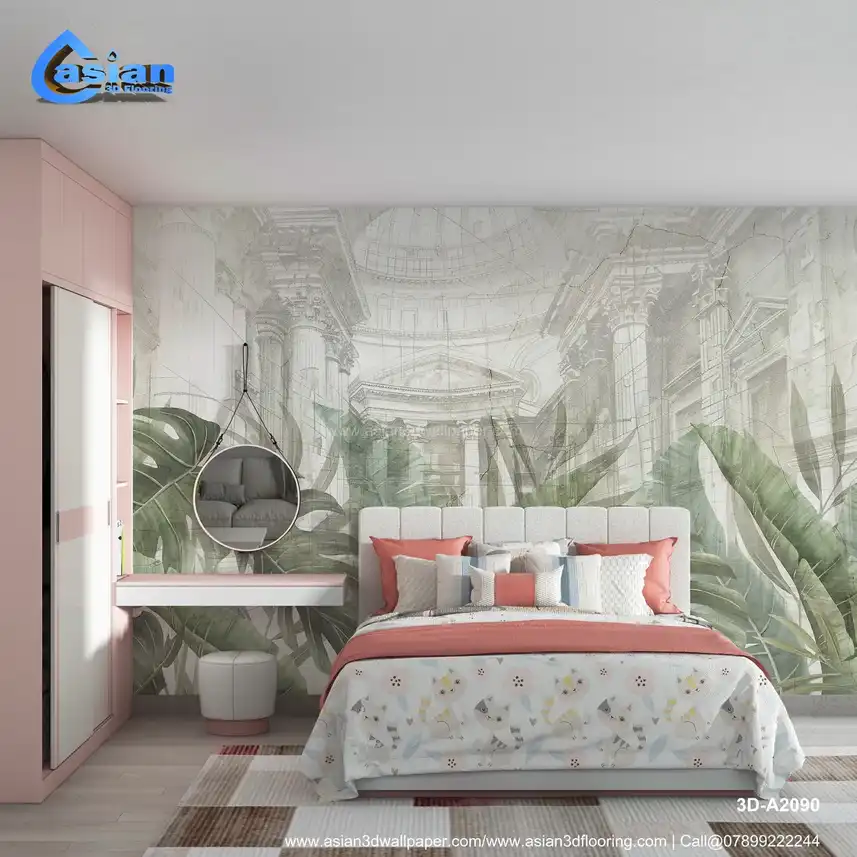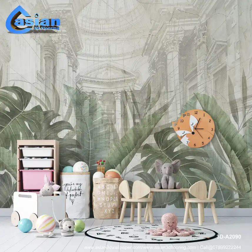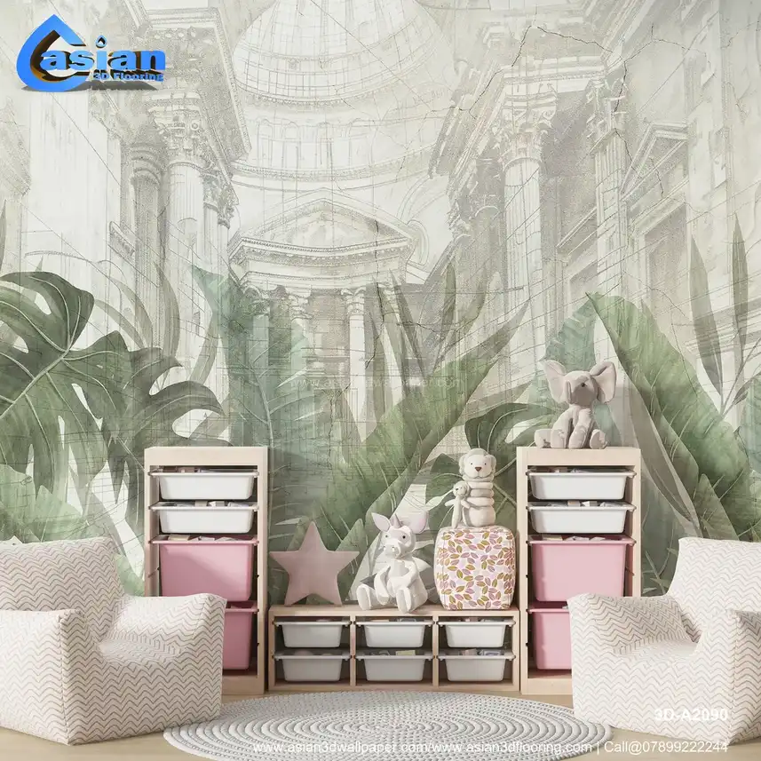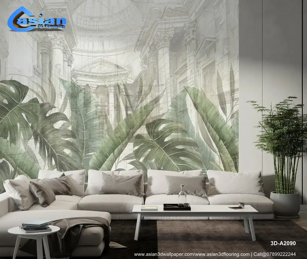 Tropical Leaves & Classical Architecture - Botanical & Urban Art Wallpaper||3D-A2090