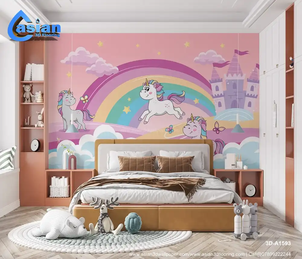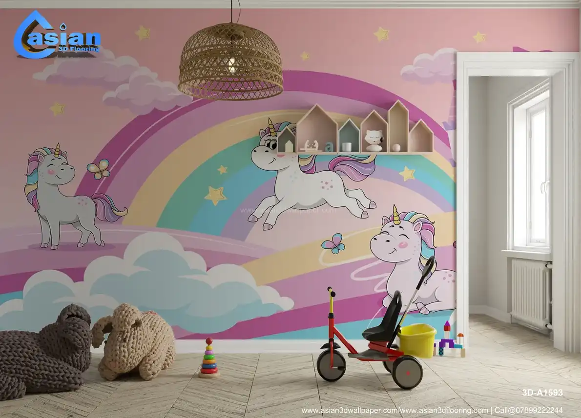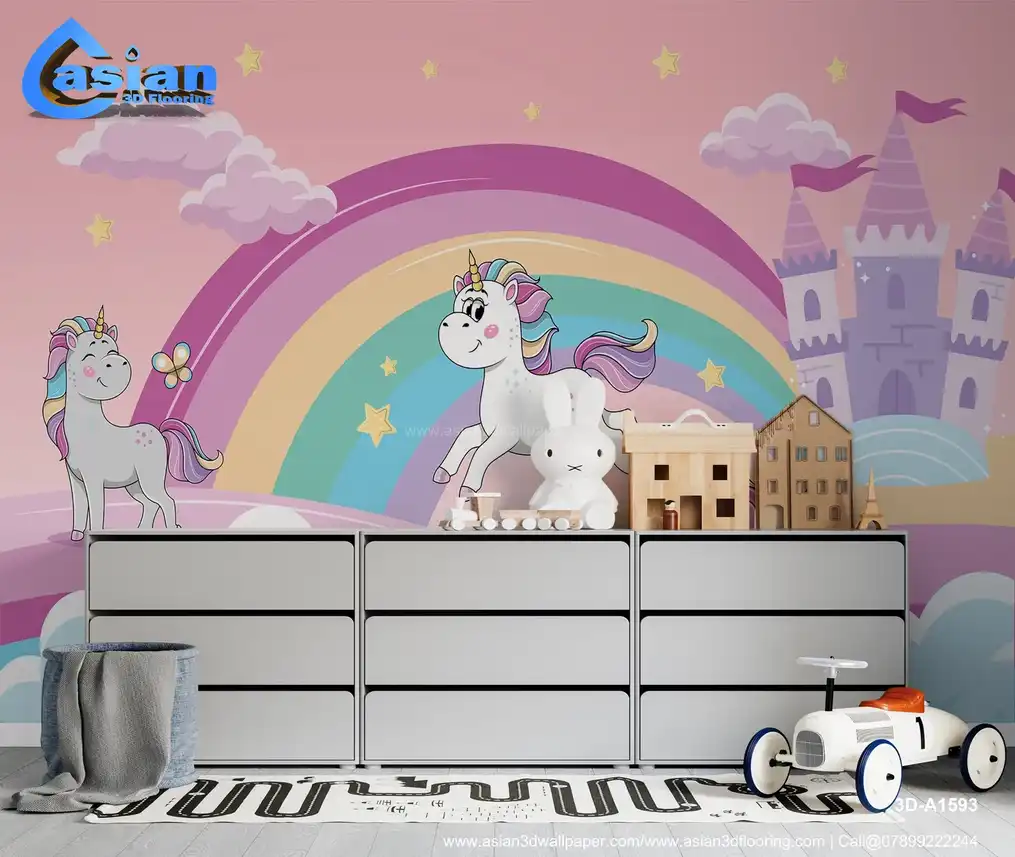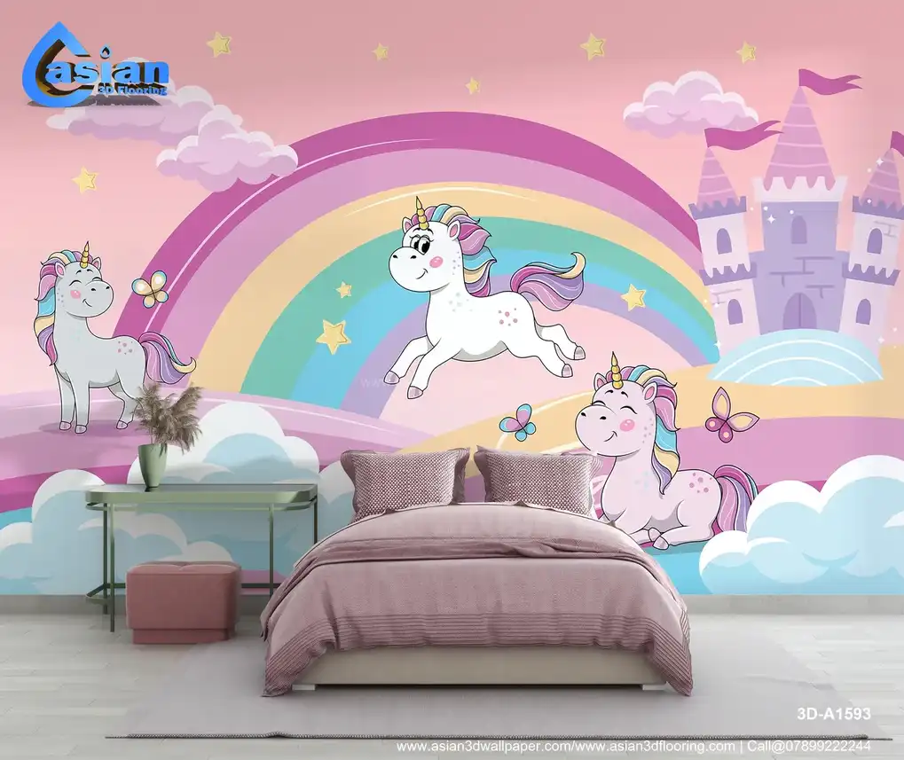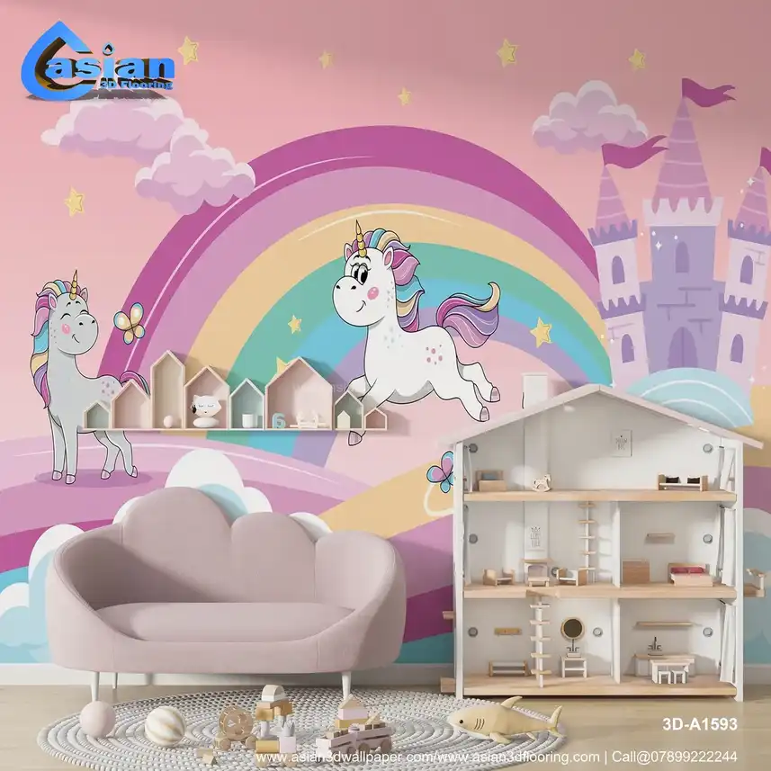 Unicorns and Rainbow Kids Wallpaper||3D-A1593