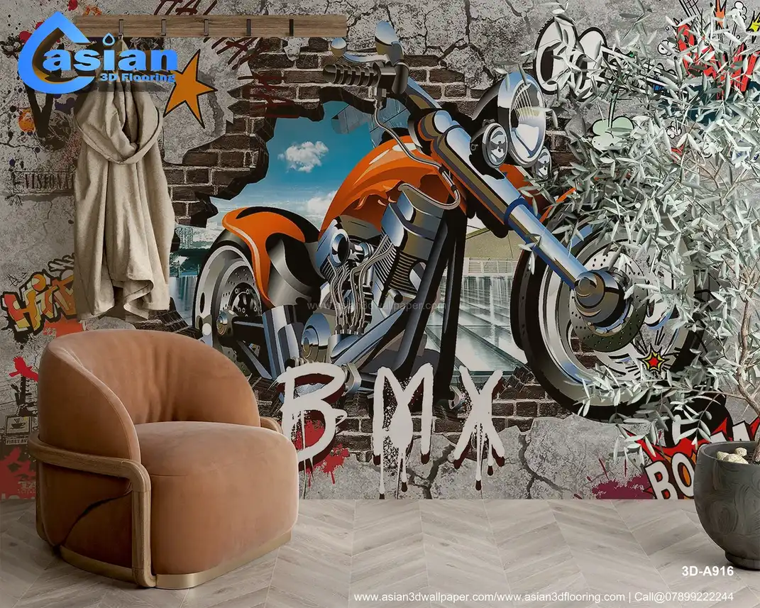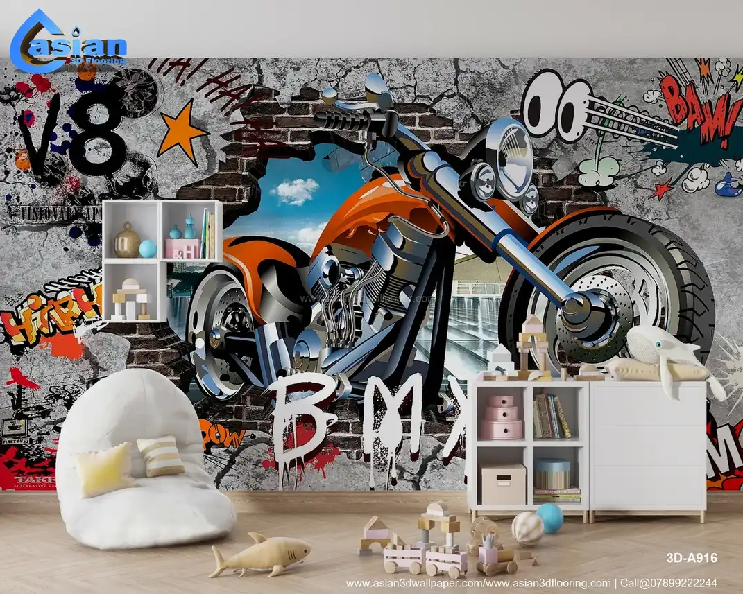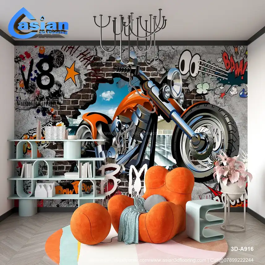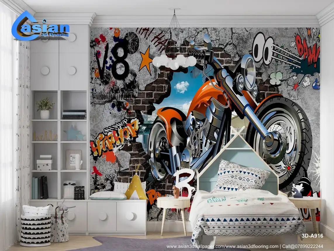 Urban Motorcycle Wall Art: Vibrant Street Style Decor||3D-A916
