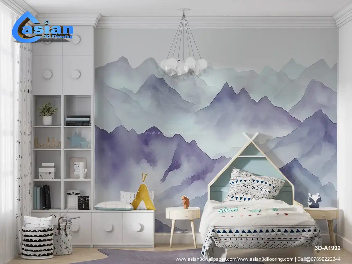 Watercolor Purple Mountain Landscape Wallpaper||3D-A1992
