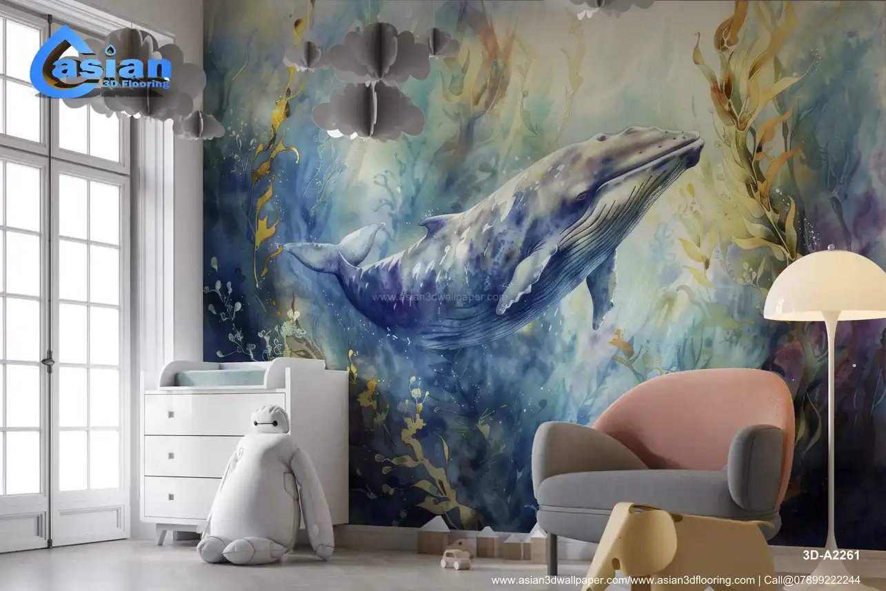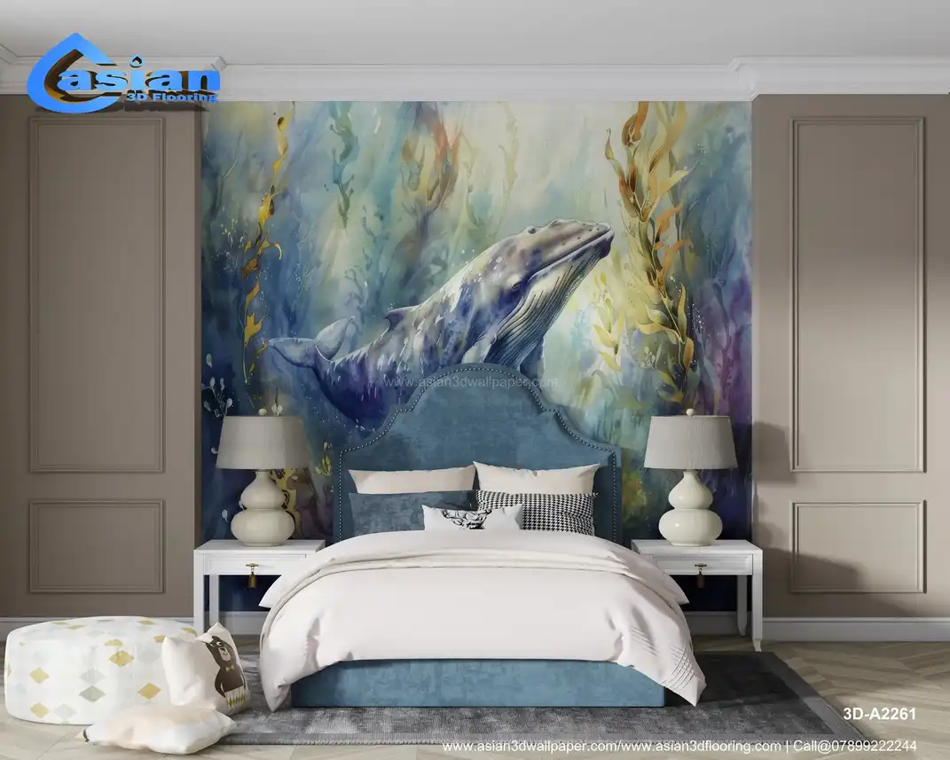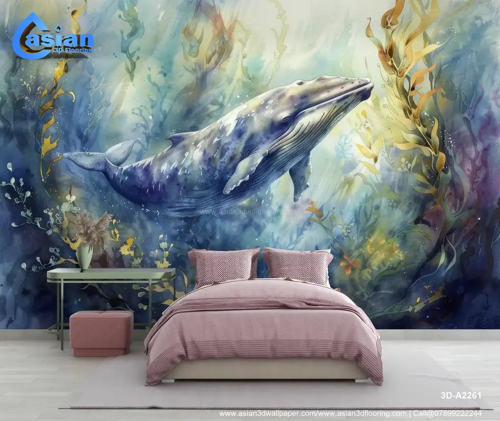 This stunning watercolor art print features a majestic whale swimming gracefully amidst a vibrant underwater garden of kelp and seaweed. The artwork captures the tranquility and beauty of the ocean depths with its soft washes and fluid brushstrokes. Perfect for adding a touch of serenity and marine magic to bathrooms, living rooms, bedrooms, or any space that needs a calming presence. Available as a high-quality print or original painting (specify if known). Shop Asian 3D Wallpaper! Benefits:- Brings the tranquility of the ocean into your home. Creates a serene and calming atmosphere. Adds a touch of elegance and artistic flair to any space. Sparks conversation and inspires a love for marine life. A perfect gift for ocean lovers and art enthusiasts.