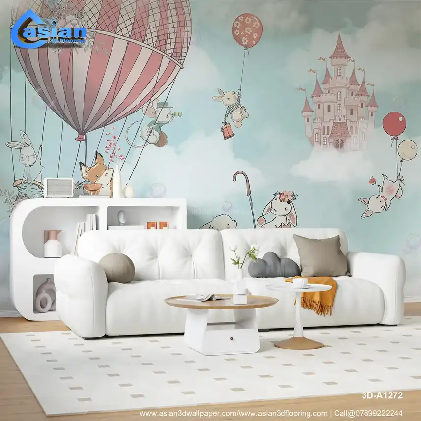 Create a playful and imaginative atmosphere in any child's room with this charming animal-themed wallpaper. Featuring cute animals like bunnies, koalas, and foxes floating through the clouds in colorful hot air balloons, this whimsical design brings joy and wonder to any space. The pastel colors of pink, blue, and soft yellows, combined with the soft, cloud-filled backdrop, will make any room feel like a magical dreamland. Perfect for nurseries, playrooms, or bedrooms, this wallpaper turns any space into a delightful retreat. Benefits:- This whimsical wallpaper features animals in hot air balloons, creating a dreamy and fun atmosphere for any child?s room.