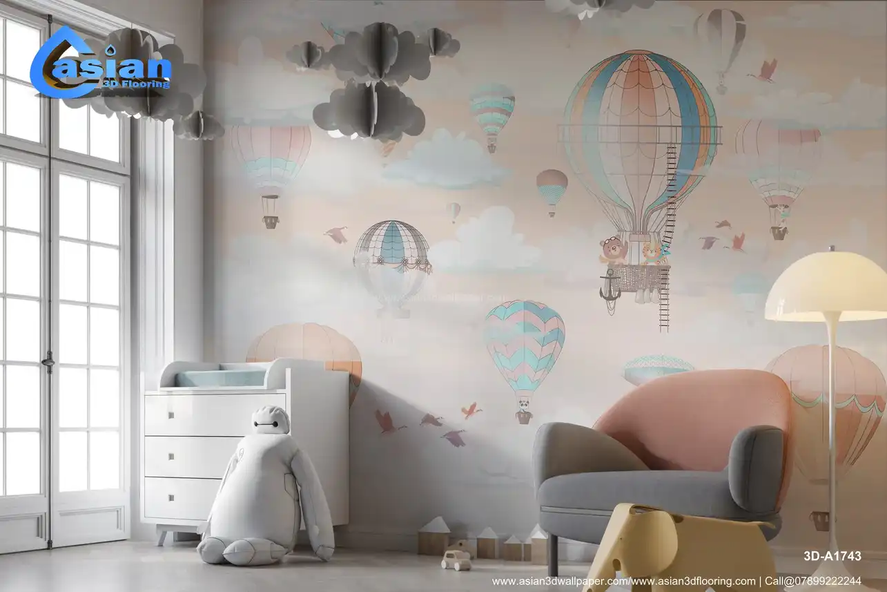 Whimsical Hot Air Balloon Kids Wallpaper||3D-A1743
