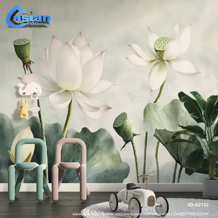 White Lotus Floral Art - Serene Botanical Wallpaper||3D-A2132