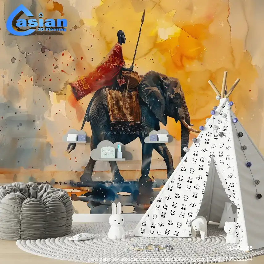 Warrior on Elephant: Dynamic Watercolor Art with Warm Palette