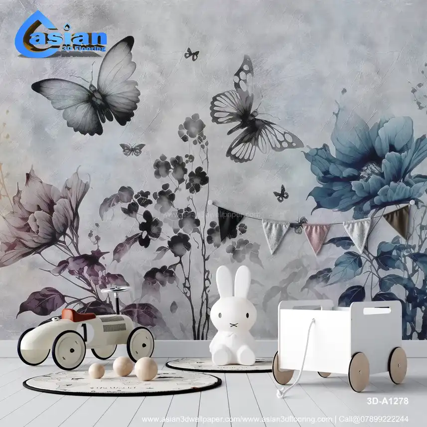 Elegant 3D Butterfly and Floral Wall Design