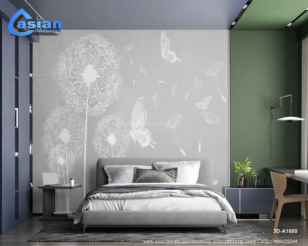 Elegant Dandelion 3D Wallpaper with Butterfly Motifs