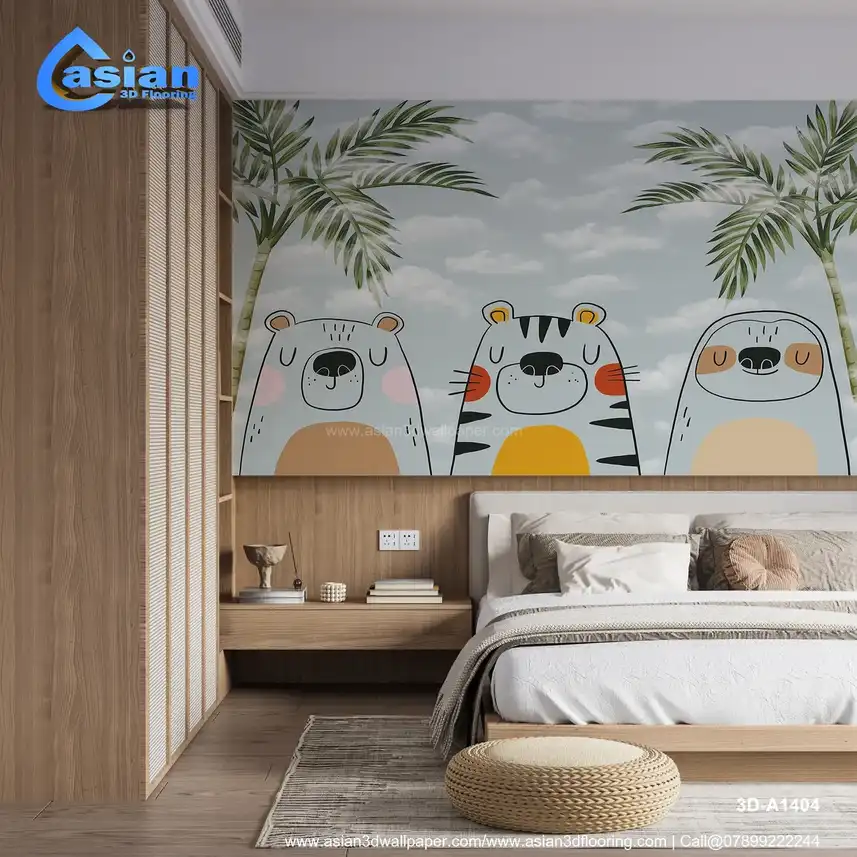 Cute Animal Friends with Palms - Kids Jungle Wallpaper