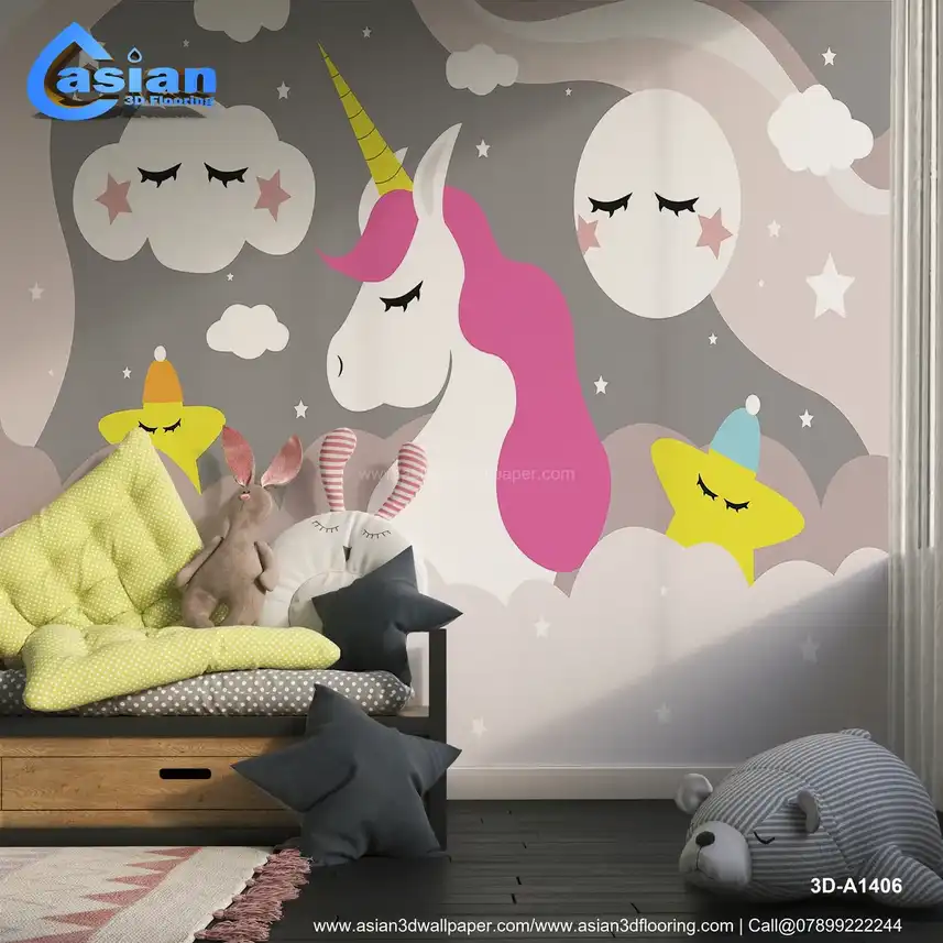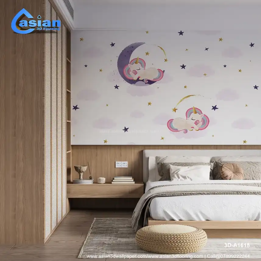 Magical Unicorn and Dreamy Night Sky Wallpaper for Kids' Rooms