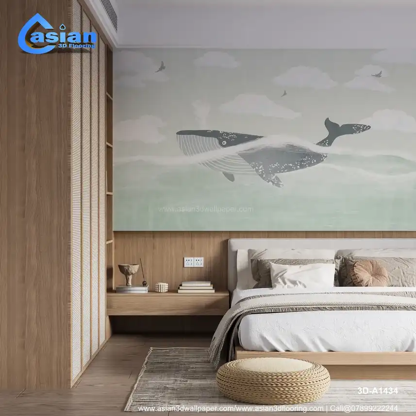Cute Cartoon Whales in Clouds 3D Wallpaper