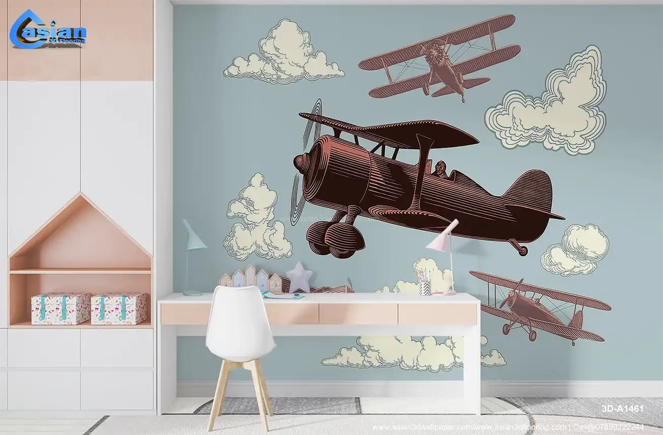 Vintage Airplanes Over Mountain Landscape Wallpaper
