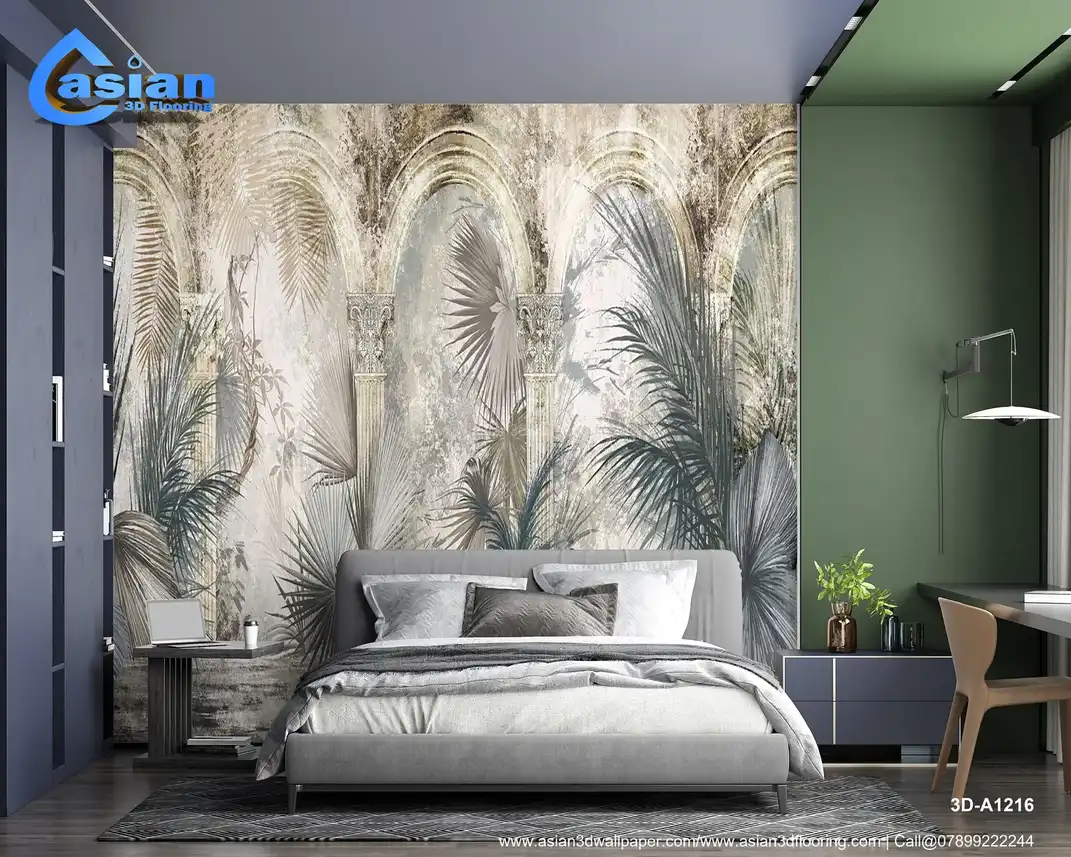 Tropical Columns and Palm Leaves Wallpaper ? Elegant Escape
