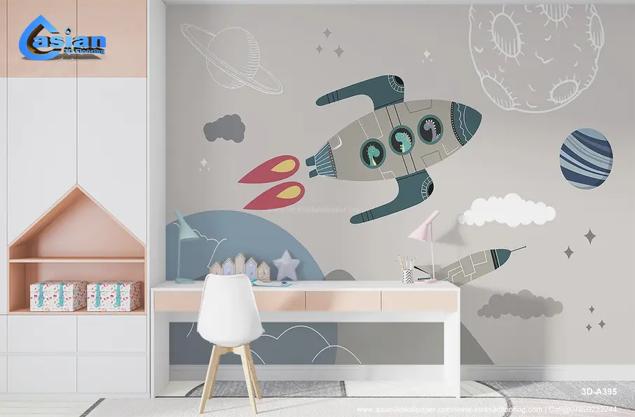 Adorable Space Rocket Adventure ? Kids Room 3D Wallpaper