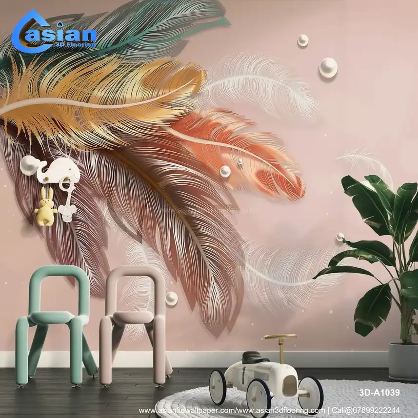 Colorful Feather Design Wallpaper: Nature's Elegance for Your Hom