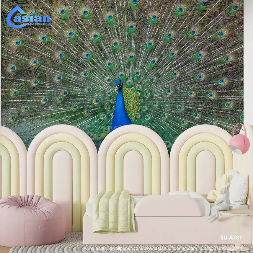 Majestic Peacock and Floral Art Wallpaper - Elegant Nature-Inspir