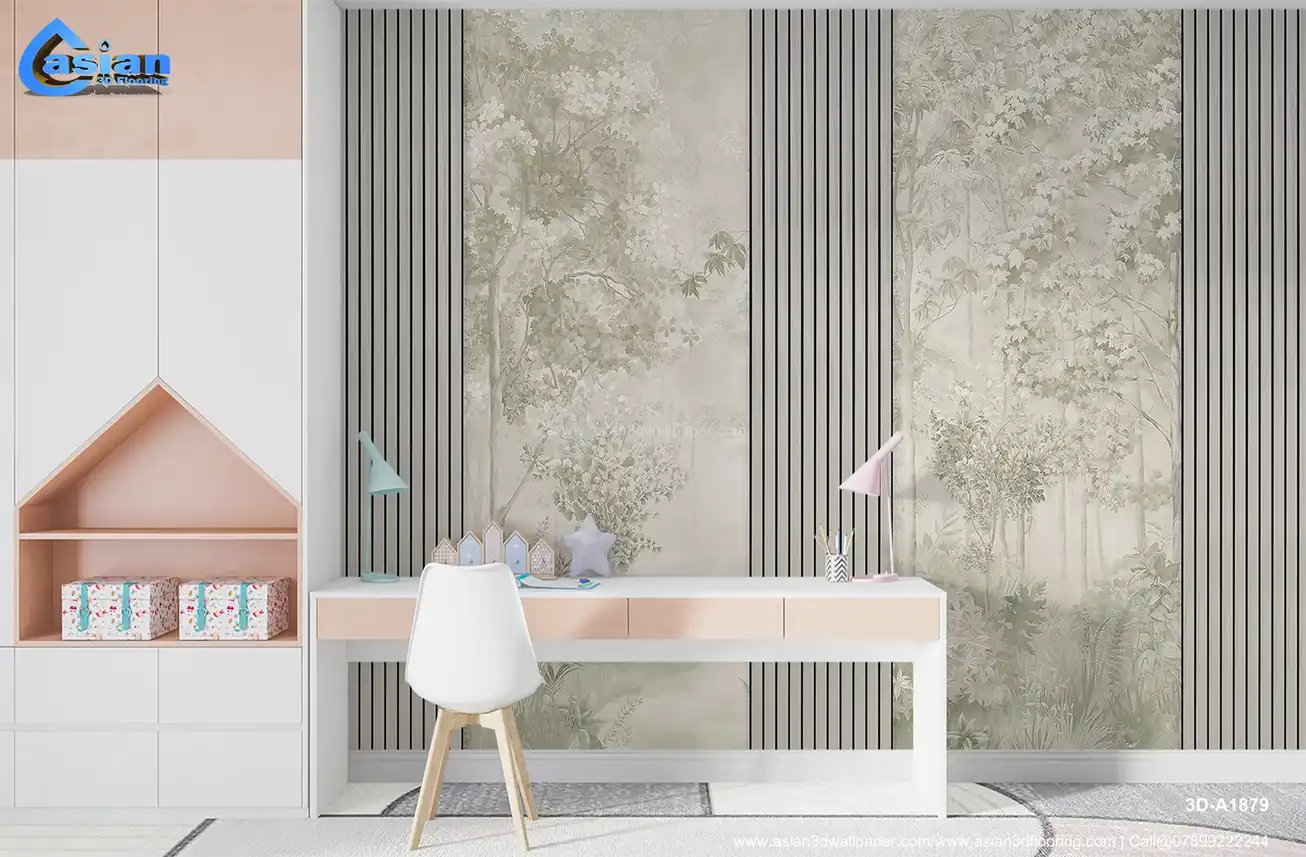 Elegant Nature-Inspired Wallpaper with Soft Stripes ? Serene Fore