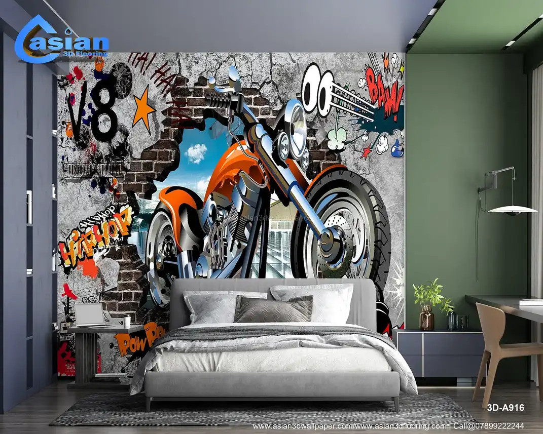 Urban Motorcycle Wall Art: Vibrant Street Style Decor