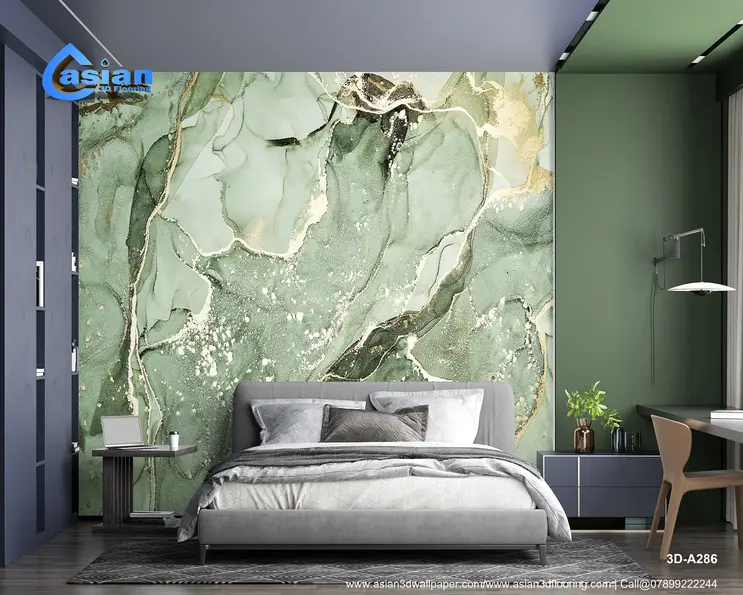 Serene Green Marble 3D Wallpaper with Gold Veins