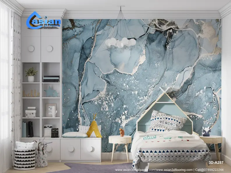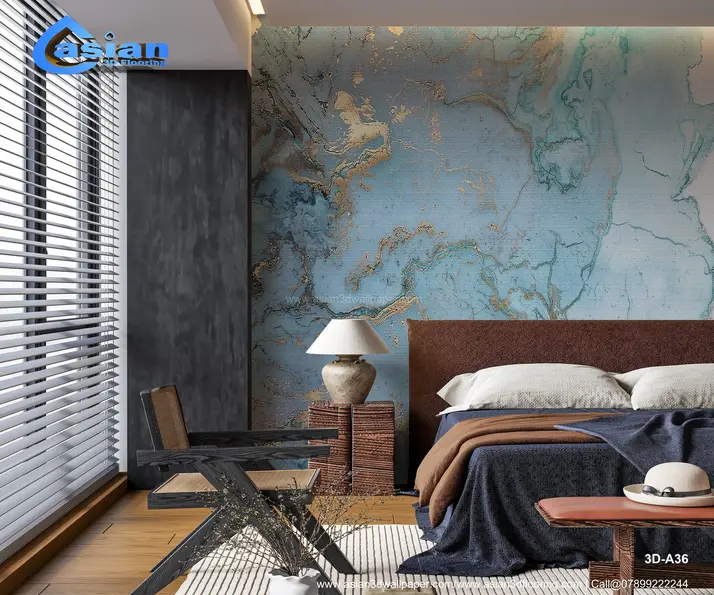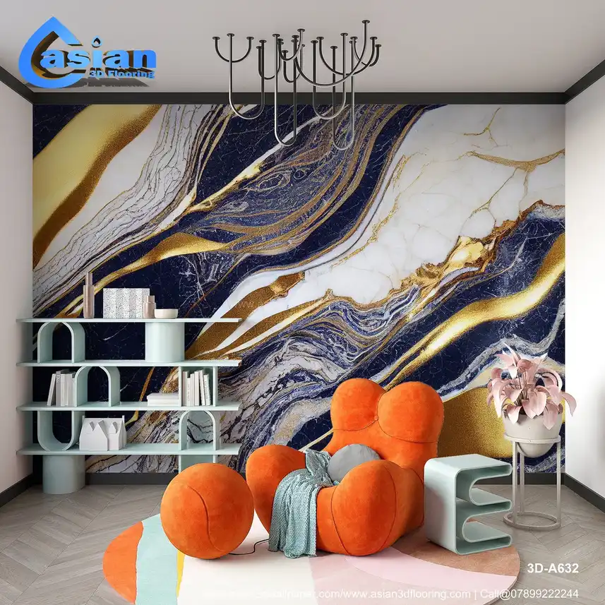 Elegant Blue Marble 3D Wallpaper with Gold Veins