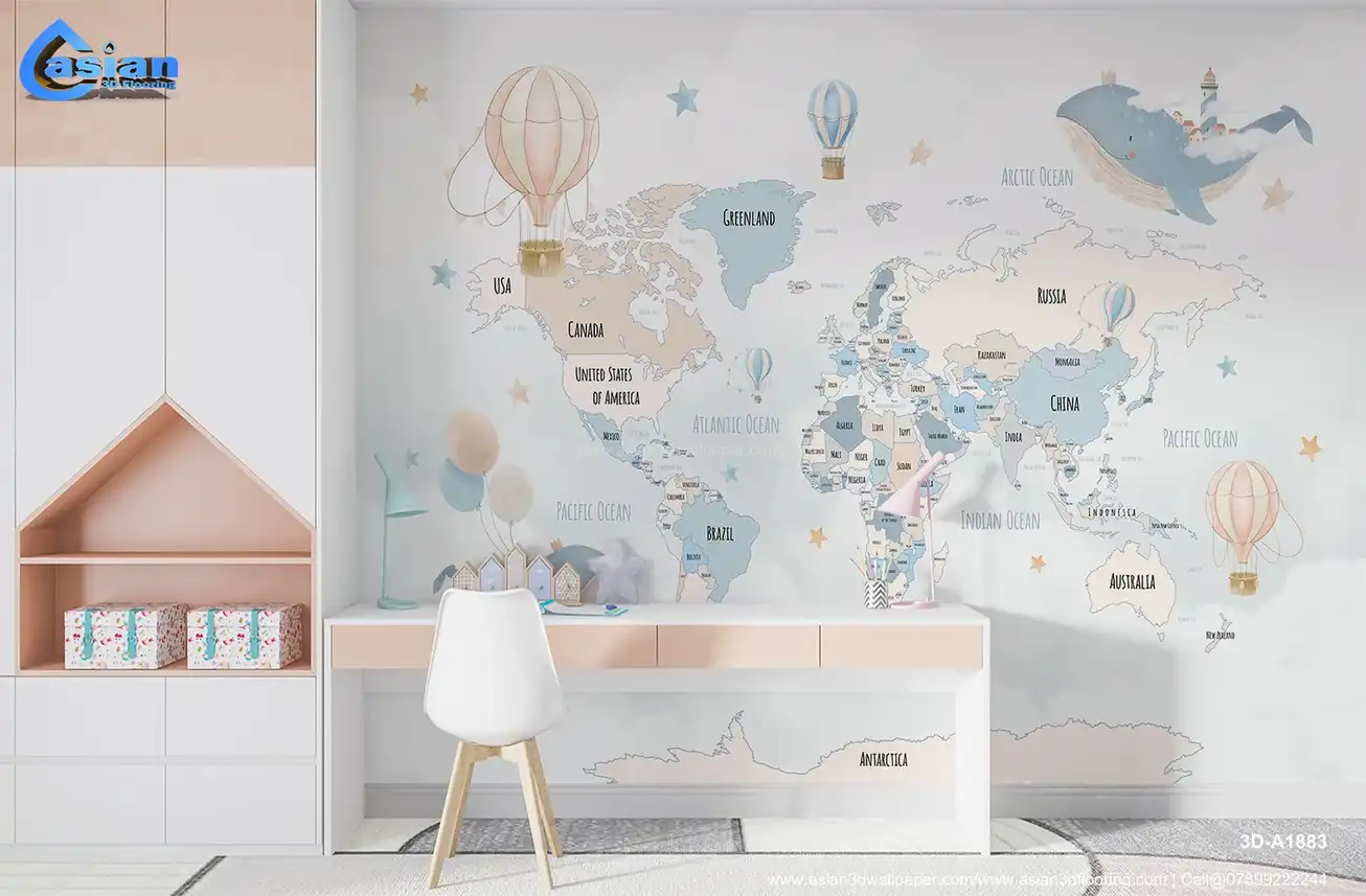 Fun and Whimsical World Map Wallpaper for Kids' Rooms with Hot Ai