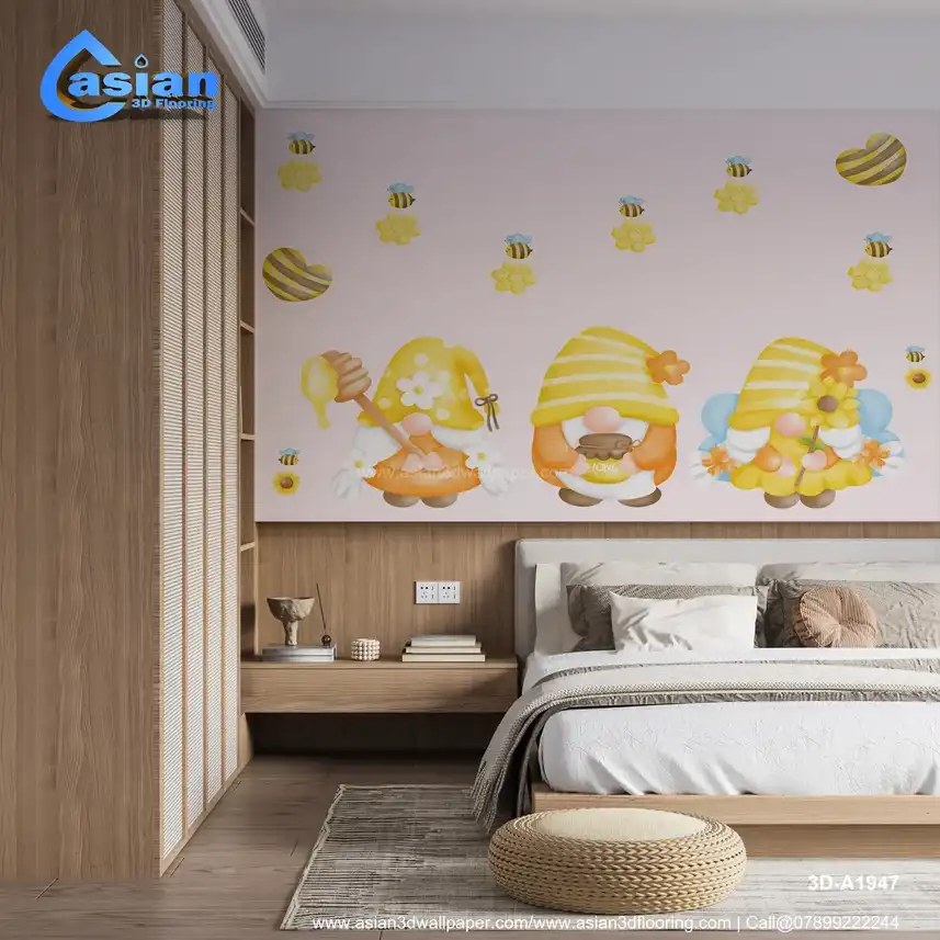 Honey Bee Gnomes with Honeycomb and Flowers Wallpaper