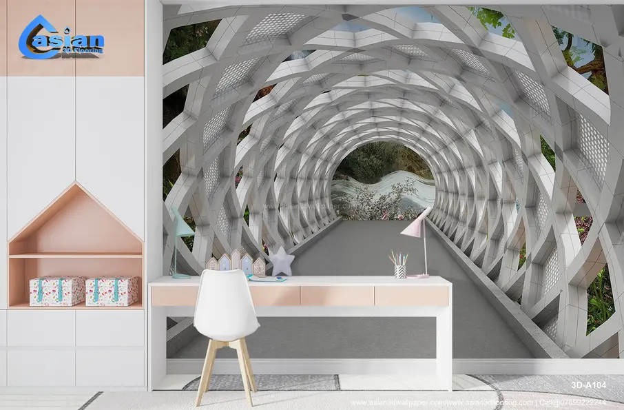 Modern Architectural Tunnel with Lush Green Landscape Wallpaper