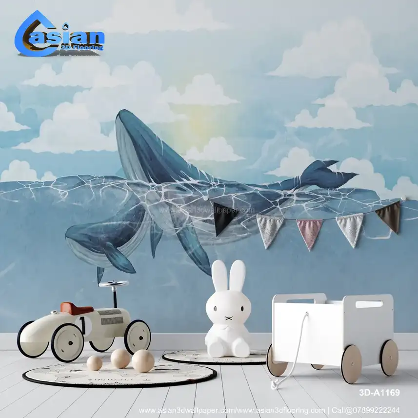 Cute Underwater Whale Wallpaper for Kid's Room and Nursery
