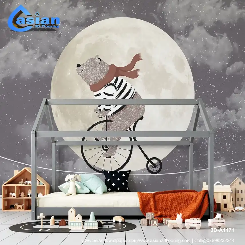 Bear Riding Bicycle Wallpaper - Whimsical Adventure