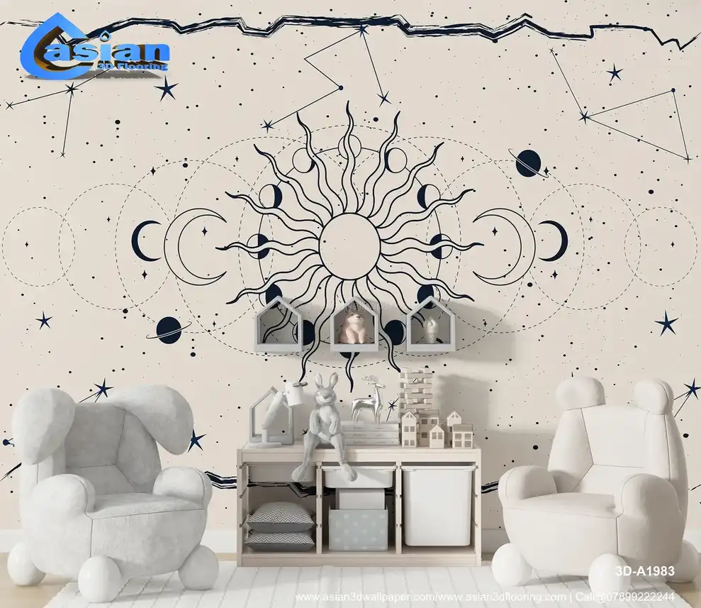 Celestial Sun and Moon Design with Constellations Wallpaper