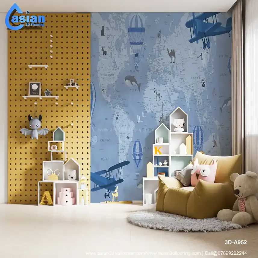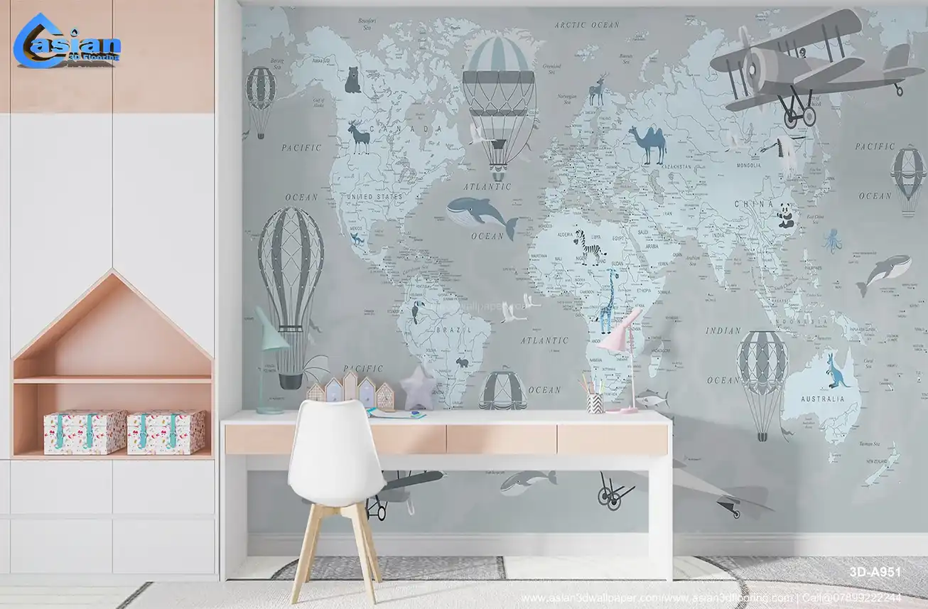 Fun and Whimsical World Map Wallpaper for Kids' Rooms with Hot Ai
